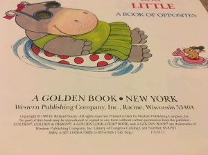 Big And Little – A Book Of Opposites – 1986 1986 – Golden Look Look Books. Western Publishing. Share this: Share on X (Opens in new window) X Share on Facebook (Opens in new window) Facebook Like Loading...